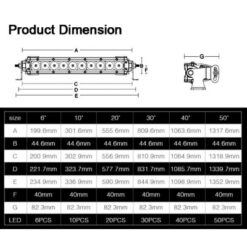 - Formaat ( Ø / ↔ ) – e) LEDbar 8″-15″