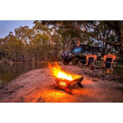 ARB has been a proud Australian business since 1975 and we love making quality Australian made products. We also love camping as much as you, so our engineers and camping enthusiasts got to work on designing our own ARB collapsible Fire Pit. What we’ve ended up with is a seriously sturdy and versatile solution that will be just as useful at home entertaining guests in the backyard, as it will be at your favourite campsite. A fire pit for camping has to be portable and while the design of the ARB Fire Pit might not scream “revolution”, we have added some key elements that make a good design great. The base structure of the fire pit is a five-piece assembly, slotting together without requiring any tools. To ensure longevity and improved heat retention, all pieces are cut from a solid three-millimetre sheet of REDCOR® steel. A base plate ensures the coals and associated heat remain in the pit, while the top edges are folded with integrated tabs to secure the included cooking grill. It is also designed to suit your own sourced cast iron BBQ plates and rotisserie (available from most BBQ stores). The included cooking grill utilises half of the fire pit’s top opening and features both a grill and hotplate section. The cooking grill is made from four-millimetre mild steel and can be seasoned with cooking oil and a quality fire. The whole unit collapses down and fits neatly into the supplied Australian made canvas carry bag. Just as we do when we specify materials for all our ARB-branded products, there was to be no compromise on the steel for the ARB Fire Pit. Most importantly, it had to be fit for purpose; fire pits endure a hard life and there is nothing worse than a fire pit that buckles and rusts. A call was put in to the specialists at BlueScope and they told us without hesitation they had just the thing. REDCOR® is a new class of steel that won’t rust, but will weather to a nice patina, thus giving it that weathered, striking and unique look. After a few “research and quality testing” home and bush campfires, we were sold on the new solution by BlueScope. REDCOR® can handle some extreme heat and whatever the elements can throw at it, plus it’s so good that they make vehicle bridges out of it.