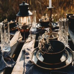DE STALEN SCHALEN EN PANNEN MAKEN ELKE TAFEL MOOIER: OF U NU BUITEN EET OF EEN BEETJE BUITEN NAAR BINNEN BRENGT.