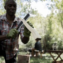 MET ZIJN MACHETE-ACHTIGE TRAPEZIUMBLAD EN HET VOLLEDIG IN DE HARDHOUTEN HANDGREEP DOORLOPEND ROESTVRIJSTALEN MES, KAN HET ALLES!