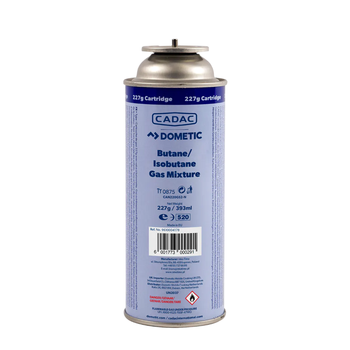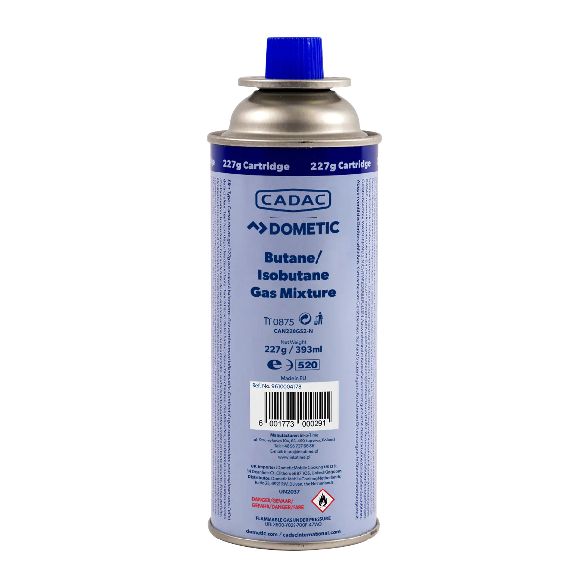 CADAC gascartridge voorzien van 100% butaangas. De inhoud van deze gascartridge is 227 gram. Hij heeft een bajonet aansluiting (SSN-29) en een beschermende dop.