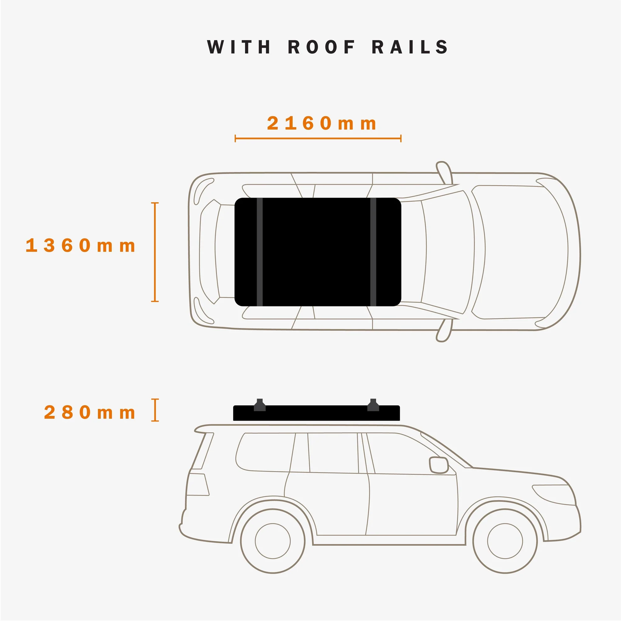 With roof rails accessory kits available (sold separately), the Ridgeback delivers everything you’ll ever need in a hard shell roof top tent and more. The included mounting brackets suit most commercially available flat roof rack or roof rail systems.