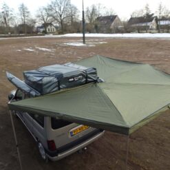 Met de Penta 270 creëert u snel en eenvoudig bijna twaalf vierkante meter overdekte ruimte naast en achter uw auto. Dit is ruim voldoende om droog onder te koken of met een aantal mensen in de schaduw te zitten. Voordeel ten opzichte van de Penta 180 is dat ook achterzijde van de auto onder de luifel bereikbaar is. Wel zo fijn als u in de regen aan het koken bent. De luifel is eenvoudig op dakdragers, roofracks en zijwanden van campers of campers te monteren.