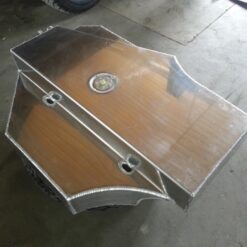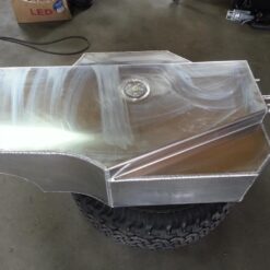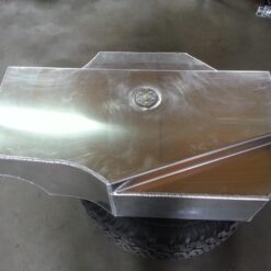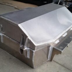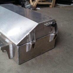 Additionele brandstof en watertank voor de TOYOTA LANDCRUISER 100 Serie. Het product wordt eerst met een laser gesneden, vervolgens gebogen op een CNC-afkantpers en tijdens handmatige afwerking wordt de juiste vorm verkregen .