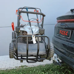 - Geavanceerde technische oplossingen : Een speciaal ontworpen mechanisme zorgt voor moeiteloos beklimmen en afdalen van steile hellingen zonder het risico dat de mand van de trekhaak wordt gerukt. De mand komt omhoog en keert terug naar zijn oorspronkelijke positie na het overwinnen van een obstakel, wat zorgt voor veilig en soepel transport.