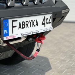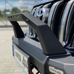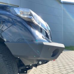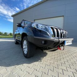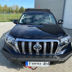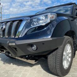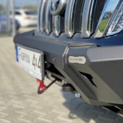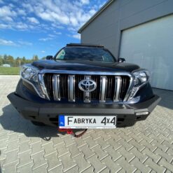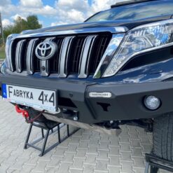 Next-gen voorbumper met lierplaat en optionele afneembare bullbar , speciaal voor TOYOTA LAND CRUISER 150 Serie 13-17 . De hoofdstructuur van de bumper is gemaakt van 4 mm dik plaatstaal en de lierplaat en de framebevestigingen zijn gemaakt van 5 mm dik plaatstaal . Het product wordt eerst met een laser gesneden, vervolgens gebogen op een CNC-afkantpers en tijdens handmatige afwerking wordt de juiste vorm verkregen . De volgende fase is de anticorrosiebescherming , bestaande uit het aanbrengen van een zinkpoederprimer en poedercoating die de bumper zijn uiteindelijke uiterlijk geeft.