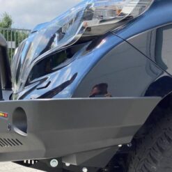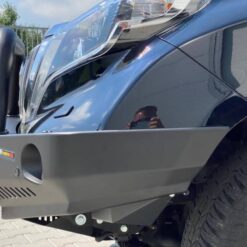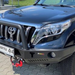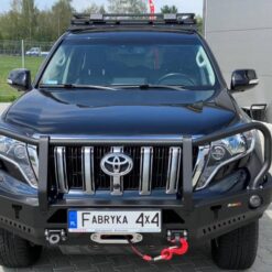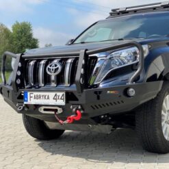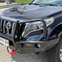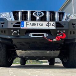 Voorbumper met lierplaat en optionele afneembare bullbar, speciaal voor TOYOTA LAND CRUISER 150 Serie 13-17 . De hoofdstructuur van de bumper is gemaakt van 4 mm dik plaatstaal en de lierplaat en de framebevestigingen zijn gemaakt van 5 mm dik plaatstaal . Het product wordt eerst met een laser gesneden, vervolgens gebogen op een CNC-afkantpers en tijdens handmatige afwerking wordt de juiste vorm verkregen . De volgende fase is de anticorrosiebescherming , bestaande uit het aanbrengen van een zinkpoederprimer en poedercoating die de bumper zijn uiteindelijke uiterlijk geeft.