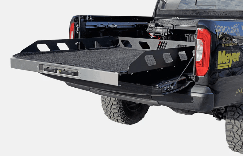 De uitschuiflade is o.a. geschikt voor de Volkswagen Amarok tot en met bouwjaar 2019. Voor nieuwere modellen zijn aanpassingen vereist. Bij voertuigen met een laadbakbescherming moet de laadbakbescherming worden verwijderd om de heavy-duty uitschuiflade te installeren. Wij adviseren om de laadvloer vóór installatie te behandelen met Herculiner of Raptor liner ter bescherming.