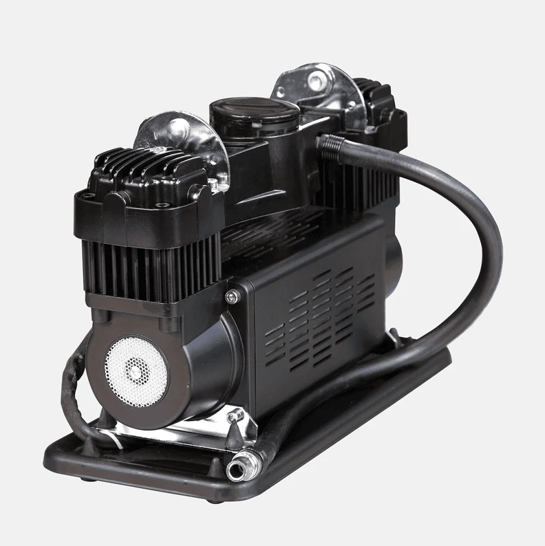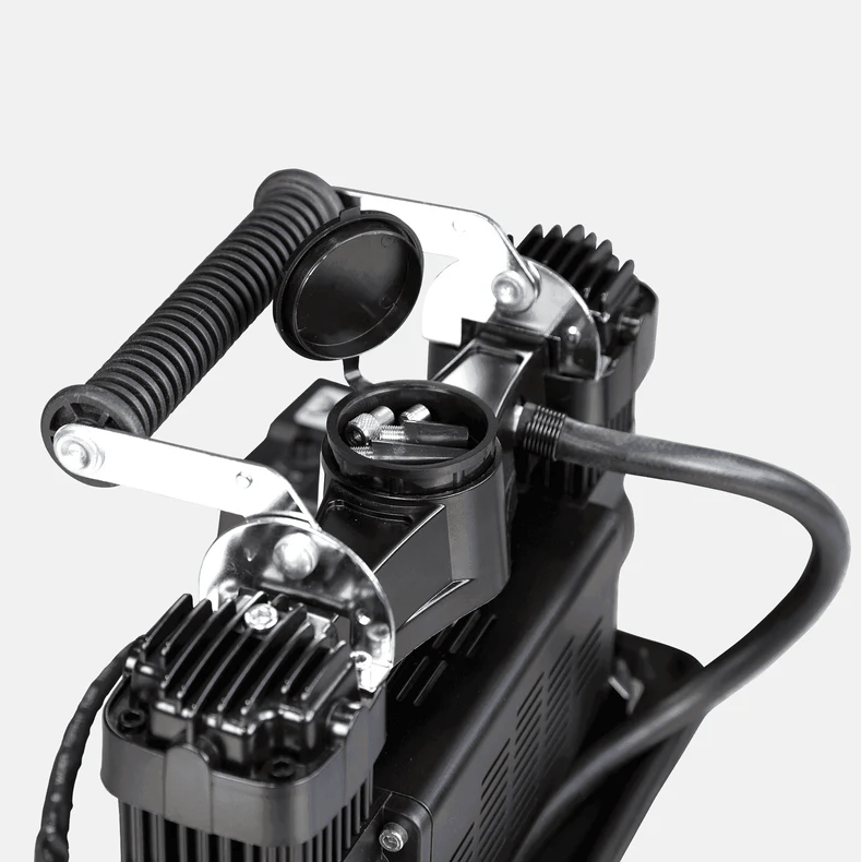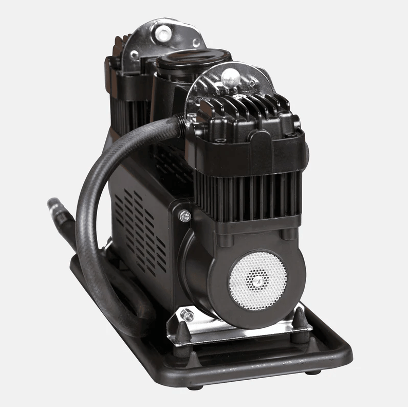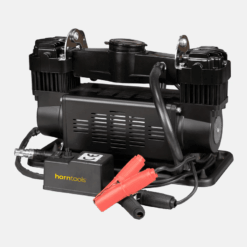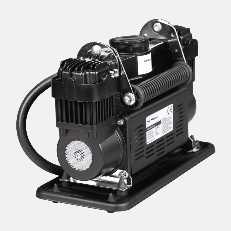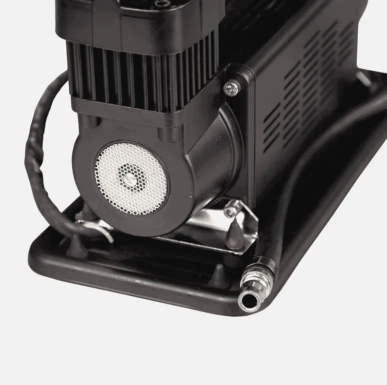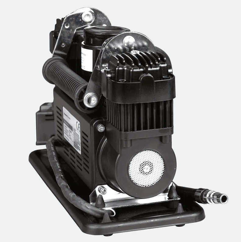 Ideaal voor off-road of kampeergebruik. Hij is echter niet ontworpen voor continu gebruik. Met deze compressor kunt u gemakkelijk opblaasboten, banden en meer oppompen. De krachtige compressor heeft twee cilinders en levert 150 liter lucht per minuut. Er mogen echter geen pneumatische gereedschappen zoals slagmoersleutels of luchtdrukpistolen op de compressor worden aangesloten.