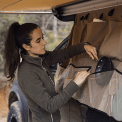 De organizer is snel te monteren in het voorste C-kanaal (montagerail) van uw daktent of luifel, of op te hangen met behulp van 4 D-ringen.