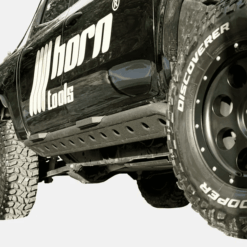 Ze hebben gekozen voor een lichtgewicht constructie, dus de rocksliders zijn een functionele cabinebeschermer van aluminium. Hij is niet geschikt voor een krik, maar biedt meer dan voldoende bescherming voor matig moeilijk terrein.