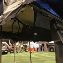 - Kan middels ogen met klitteband aan ieder daktent frame (binnenin) opgehangen worden.