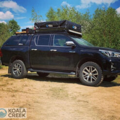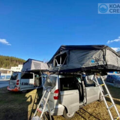 - Deze daktent heeft een verstevigde en geïsoleerde bodemconstructie met aan de buitenzijde aluminium tranenplaat.