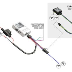 De interface wordt geleverd met een specifieke bekabelingskit en is te gebruiken in combinatie met de optionele Lazer CAN Contactless Reader, waarmee verbinding wordt gemaakt met de CAN-Hi en CAN-Lo draden zonder metaal-op-metaalcontact.