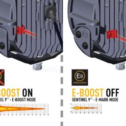 Both Sentinel Black and Chrome lamps, in the ‘Standard’ range, produce the same lighting performance. Emitting 9,529 raw lumens, the lamps deliver 1 lux reaching to over 700m; impressive in itself, but considering the 52 degrees horizontal beam angle, this is a product that has been designed to deliver maximum visibility for all manner of road and off-road use. Like all Lazer products, the colour temperature at a pleasant 5000K is easy on the eye, while maximising sharpness and definition of objects ahead. The lamp is UNECE approved to Regulation 112 as a high beam driving light, through adoption of Lazer’s dual output E-Boost technology; operating at 100% the light output is beyond the permissible limit of the ECE regulations, so removing the supplied Boost Cap from the back of the lamp reduces the light output to be within the allowable limit.