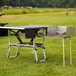 De Sheepie® Chuck box (kookkist) is een innovatieve, multifunctionele en draagbare keuken die speciaal is ontworpen om buitenkoken eenvoudiger en comfortabeler te maken. Hij fungeert tevens als tafel en handige plek om kookgerei op te bergen.